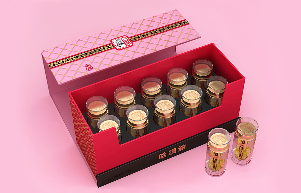 我們走訪了市面上眾多擁有同類產品的藥店,發(fā)現藥店中的這類禮盒都需要打開外盒陳列內部產品,這時,內部禮盒反而成為了視覺第一接觸點。而那些常見的或圓或方的普普通通的透明亞克力盒,不能體現產品的價值,因此需要重新對包裝造型進行開發(fā)設計。