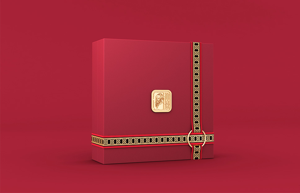 我們的禮盒創(chuàng)意是以玉璧禮天、玉琮禮地,以禮天下的設計理念。絲帶代表二龍,象征禮物至尊至重,金環(huán)象征“玉璧”,自古貴族多將玉璧作為饋贈之物、相見之禮,表示祝賀吉祥。里面的包裝取自玉琮造型,古代帝王以玉琮禮地,以示感恩大地對人類的自然饋贈。十字穿環(huán)是從伏羲女媧、二龍穿璧演化而來的,也是我們仲景品牌獨有的文化符號。寓意避除不祥、化育萬物,象征健康無限,財富延綿不斷。