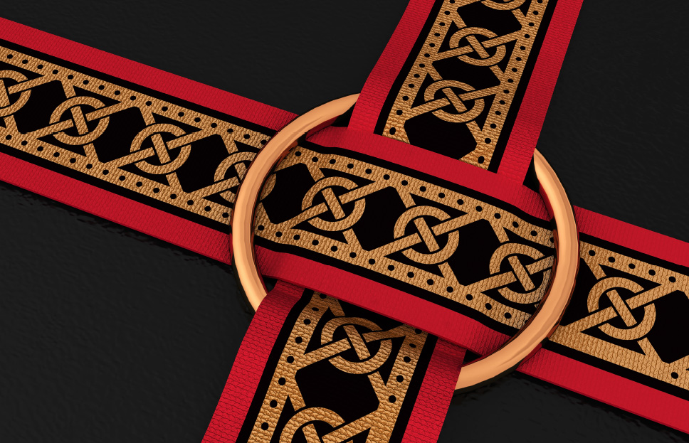 李華清項目團隊將“十字穿環(huán)”立體化,把時間與空間的概念置于其中。承載著十字穿環(huán)紋樣的絲帶相互疊加,穿過象征著“璧”的金環(huán)。
