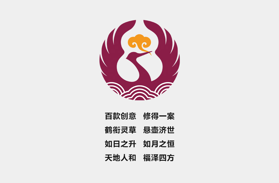 項目團隊在手繪上百款創意方案中,選定了以“鶴銜靈芝”這一傳統中藥文化的經典形象與葫蘆相結合,作為品牌標志,標志整體形象如月之恒,如日之升,如圓滿的上弦月亮,又如太陽剛剛升起,蘊含向上升騰的強大生命力量。
