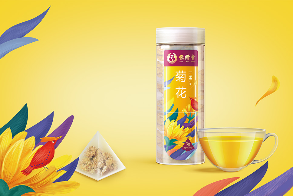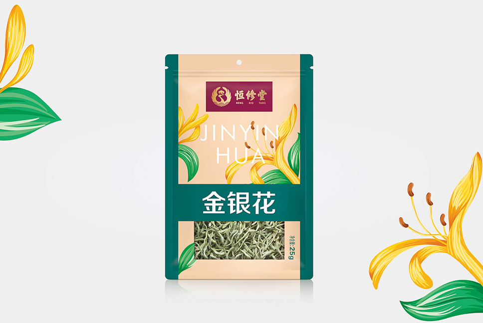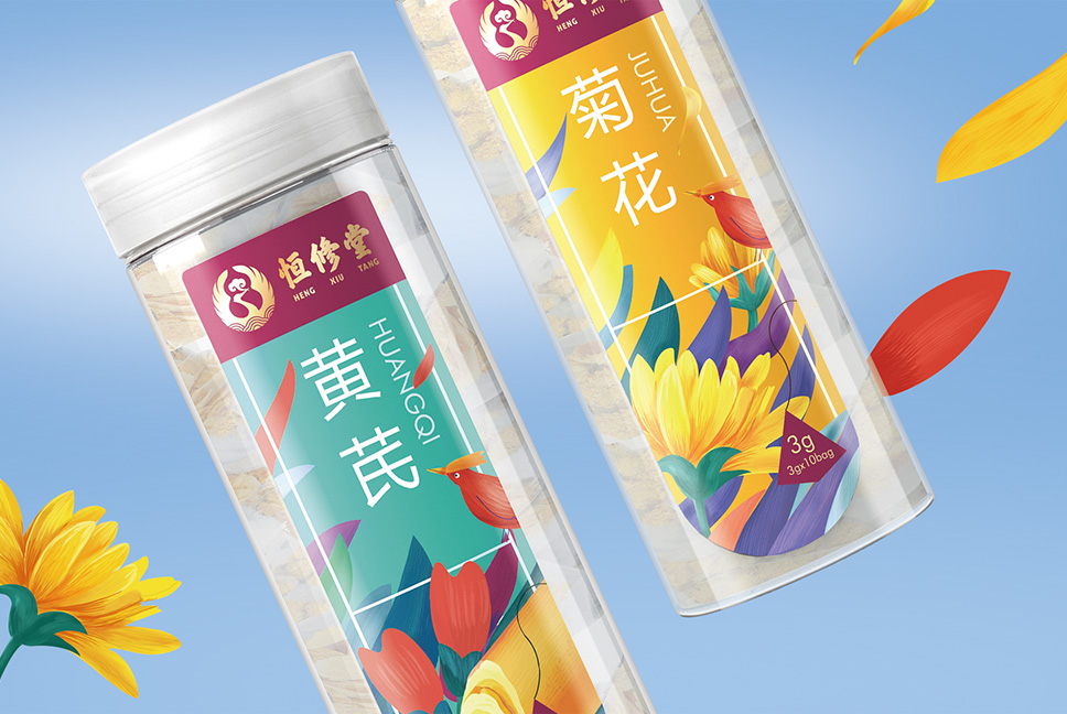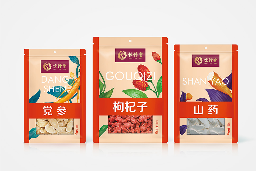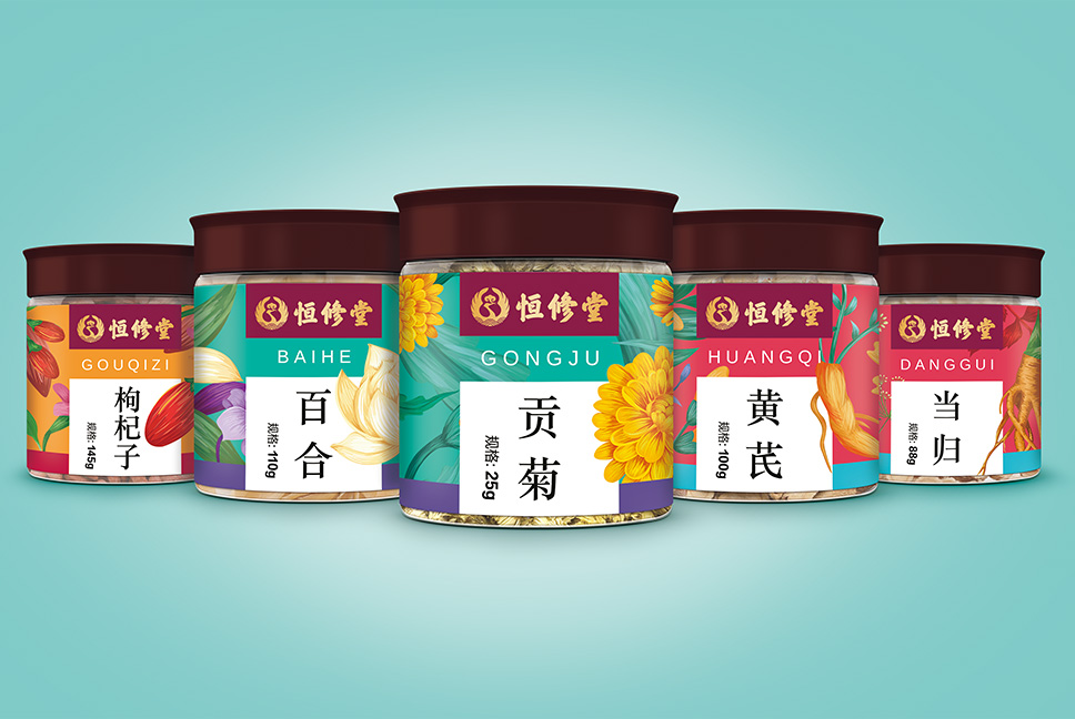 恒修堂字體以榜書提名,為恒修堂傳承歷史文化、中醫養生文化、藥堂文化,提供了深厚的文化底蘊。將海棠紋與海水江崖紋結合在一起,形成恒修堂的戰略元素, 建立品牌區隔。
