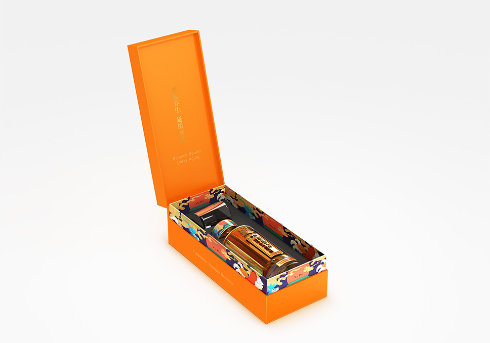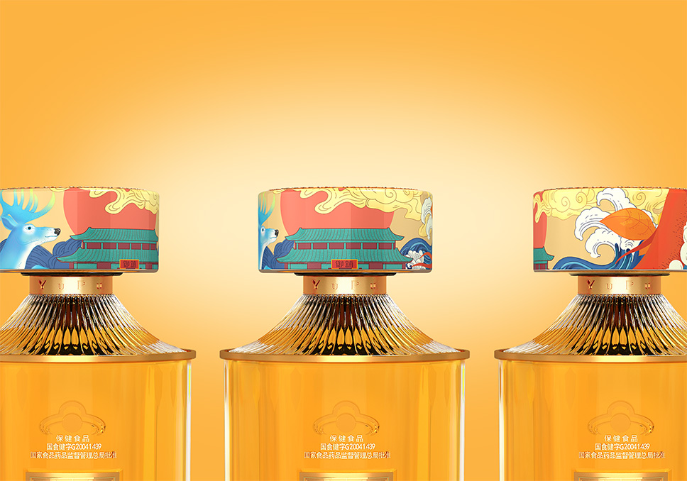 李華清產品戰略為御鋪養生酒開發了全新的養生酒瓶型,瓶型整體似“圓柱”造型,瓶口在皇家園林中的天壇祈年殿建筑中得到靈感,外部臺基屋檐圓形層層收縮上舉既造成強烈的向上動感,又使人感到端莊穩重,整體瓶身為圓柱形,瓶口借鑒祈年殿的房檐,增加瓶身的層次感。以御鋪品牌藥鋪文化和皇家文化結合產品養生文化提煉融合,塑造御鋪專屬的識別性元素,建立品牌資產。