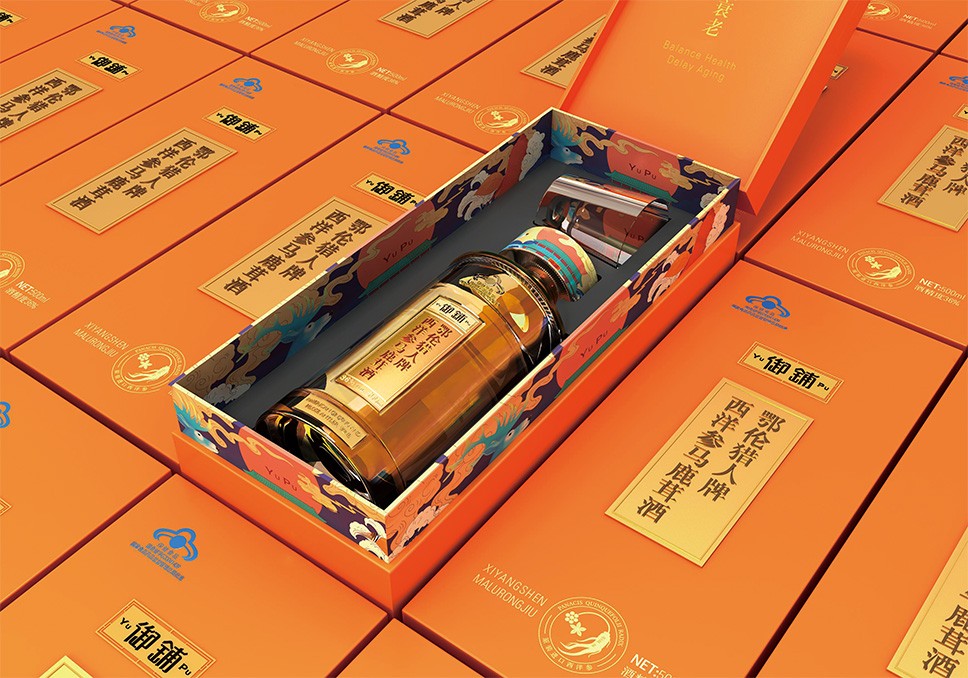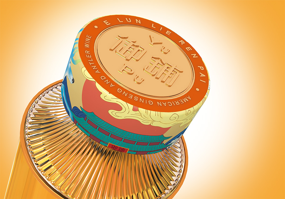 瓶口的圖案是由馬鹿茸、西洋參、中藥鋪、祥云、水紋等元素中提煉出來馬鹿茸,西洋參是中醫藥的珍品能夠體現產品的屬性;中藥鋪增加產品在醫藥中體現的價值感;祥云、水紋在傳統元素寓意祥瑞之云氣,表達了吉祥、喜慶、幸福的愿望以及對生命的美好向往,同樣把美好的寄寓應用瓶口的包裝上。