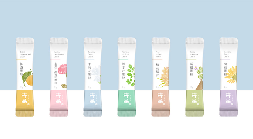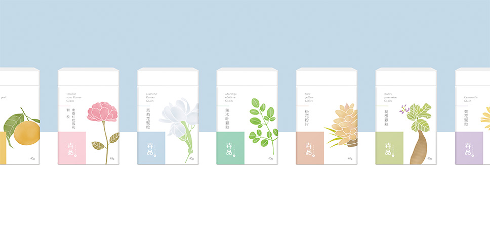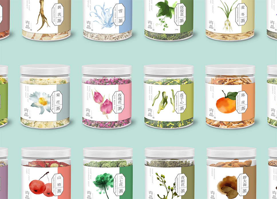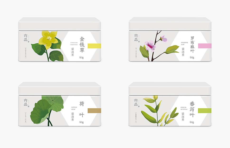 李華清圍繞由品牌理念所推導(dǎo)出的價(jià)值主張視覺化內(nèi)容,也就是自然養(yǎng)生的概念元素。運(yùn)用水彩插畫的風(fēng)格,繪制出產(chǎn)品使用的形態(tài)?;ǘ湓谒袚u曳的唯美瞬間,化為紙上慢慢暈開的筆墨,猶如產(chǎn)品溫和滋潤我們的身心。唯美、溫潤,散發(fā)著清新的自然之味。傳遞出產(chǎn)品精致的氣質(zhì),詮釋出植物茶飲的自然清新,為傳統(tǒng)茶飲注入新鮮活力。