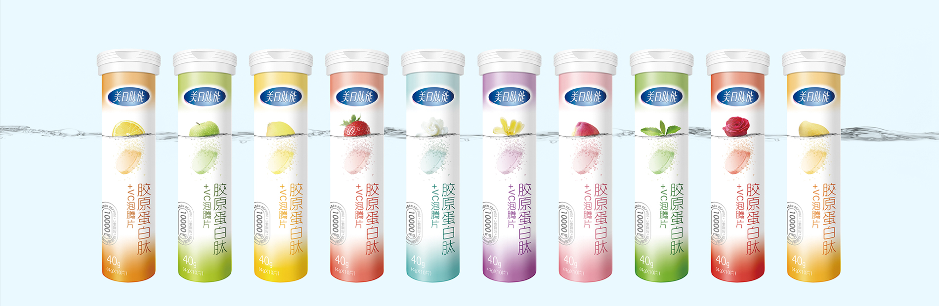 李華清為美日肽能打造戰略包裝色彩,提取產品高明度色彩,打造亮麗色彩體系,為產品注入滿滿的生命與活力。亮麗配搭營造視覺聚焦,使產品終端展示脫穎而出,快速與同類產品建立區隔,引發消費者購買。