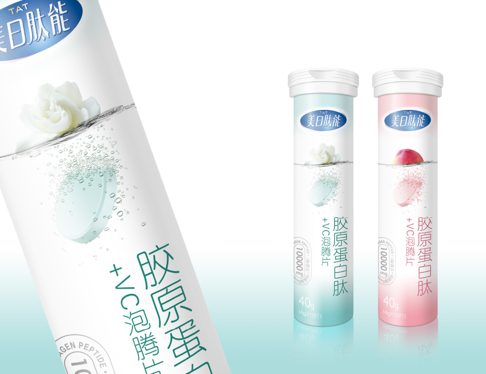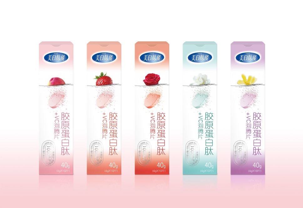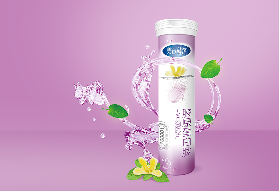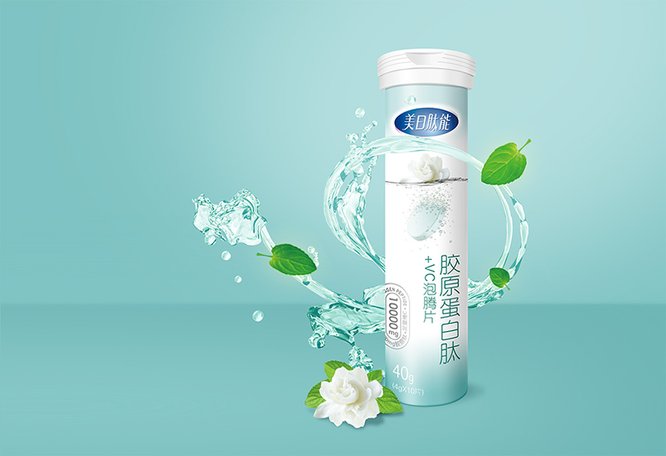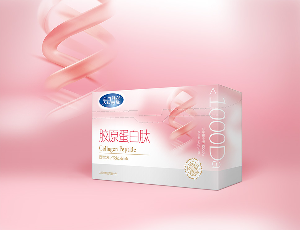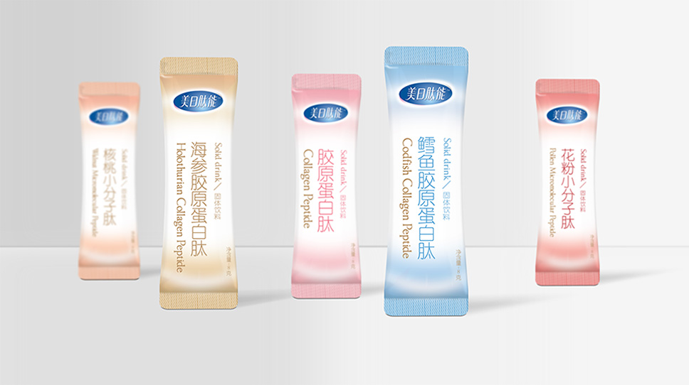 美日肽能膠原蛋白肽固體飲料,將保健食品休閑化、生活常態化,產品定位快消品概念。包裝形式定位休閑、時尚、輕便,迎合現代人士快節奏的生活需求。經獨有專利技術提取出小分子肽,吸收率遠優于氨基酸和蛋白質,效果比食用同等量蛋白可提高數十倍。包裝形象用放大的數字突出產品的專業性和核心賣點,通過奇幻的畫面,讓受眾直觀感受到小分子肽的神奇力量。色彩定位根據產品屬性和人群,定位清雅、唯美、時尚,贏得年輕受眾的一致認可。