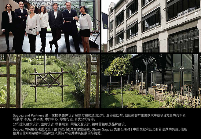 Saguez & Partners的總部在巴黎,是法國最大的設計公司擁有120名雇員,年營業(yè)額2.3億元在歐洲商業(yè)規(guī)劃設計方面Saguez處于領先地位,從項目的整體規(guī)劃、設計、外立面包括內部裝修設計等視覺方面均有不俗的建樹。主要客戶有法國的“老佛爺”商場、巴黎機場、法國標致車等等。公司擅長建筑設計、室內設計、零售規(guī)劃、網絡交互設計、策略營銷以及品牌建設。